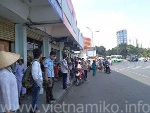 ベトナム語のみとなりますので、写真とベトナム語訳があるガイドブックを切符売りの人に見せて行き先を告げてください。